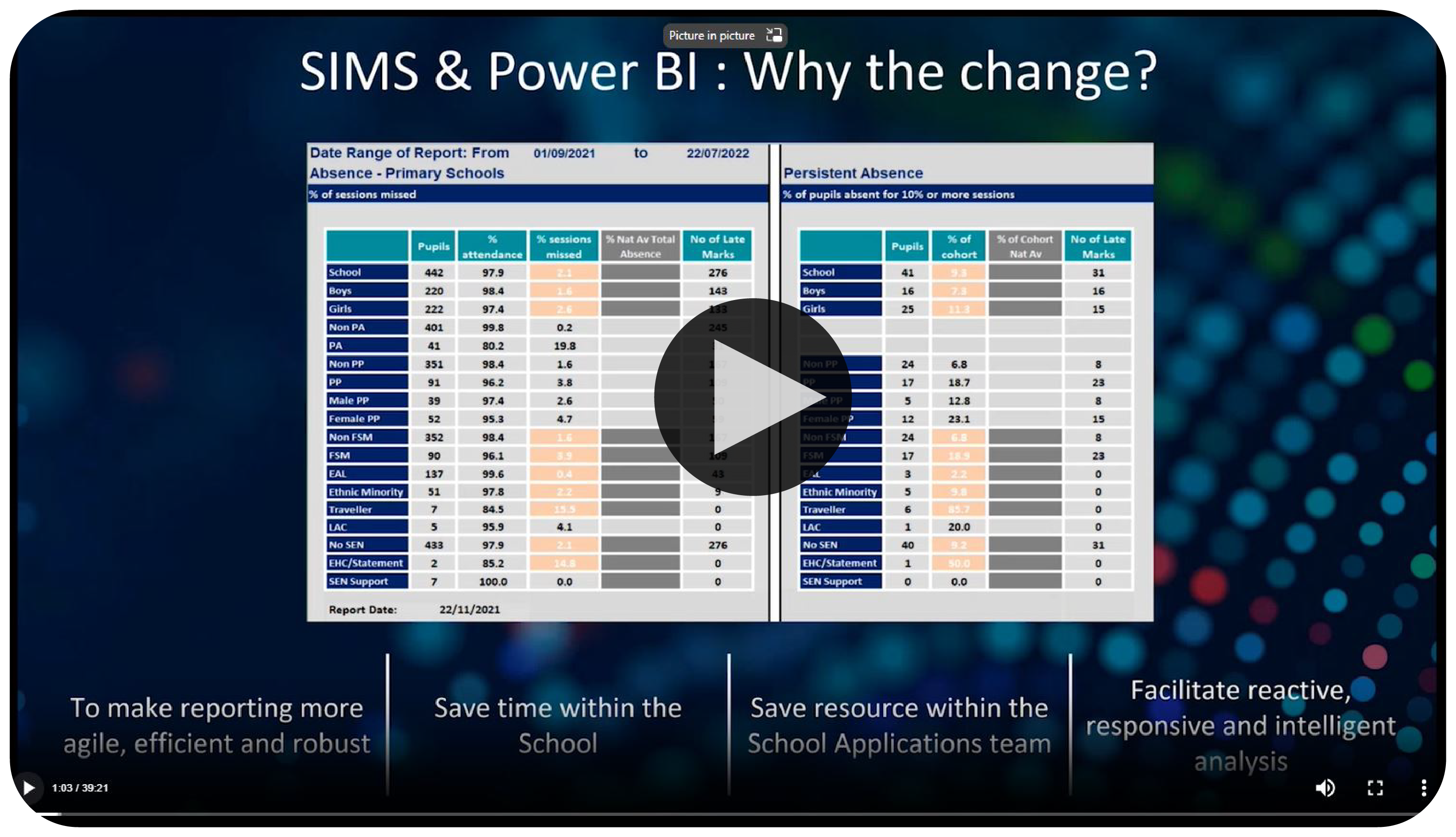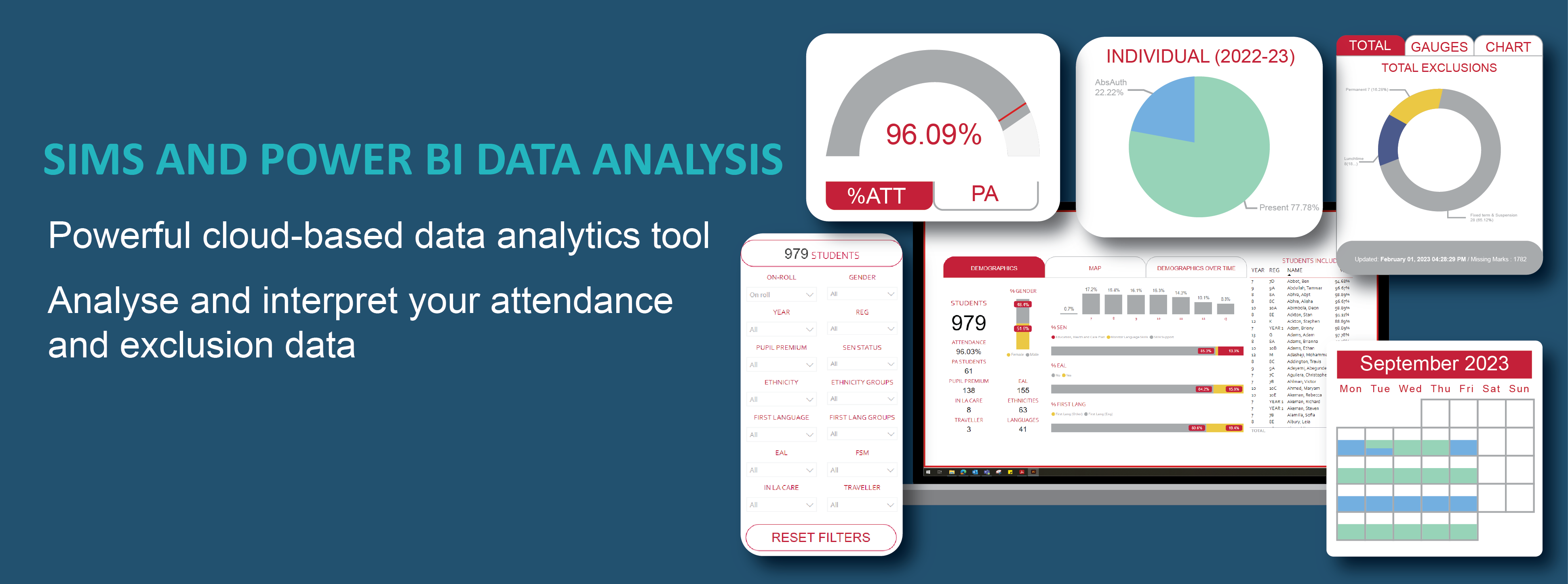We have created a Power BI Report Template which pulls existing data from your SIMS database. There is no duplication of data entry and all data conversion is done automatically by Power BI.