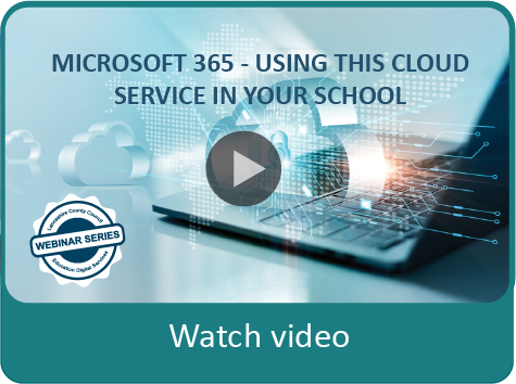 Microsoft 365 - Using this Cloud Service in your SchoolWe want to ensure that schools are taking advantage of the benefits of Microsoft 365 and the cloud services it offers schools. Watch our latest webinar recording to learn how your school can use Microsoft 365 and OneDrive for file storage in the cloud and to improve how you can share access to files. |